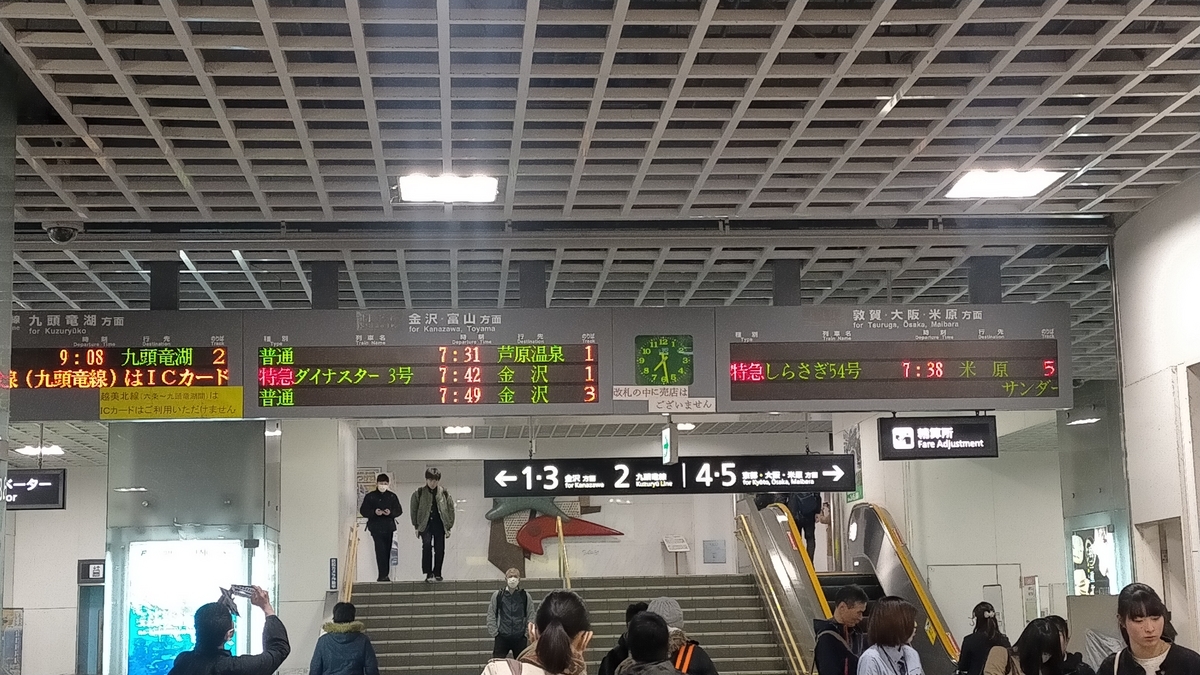 ※この間に福井止まりの特急ダイナスター2号が到着しています