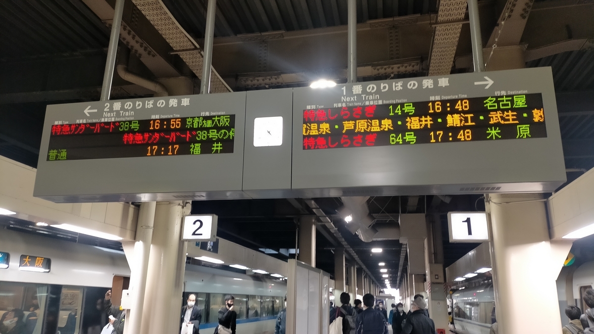 21時32分、大阪行き最終サンダーバード50号は福井駅を発車しました pic.twitter.com/YhEFvi3SOc